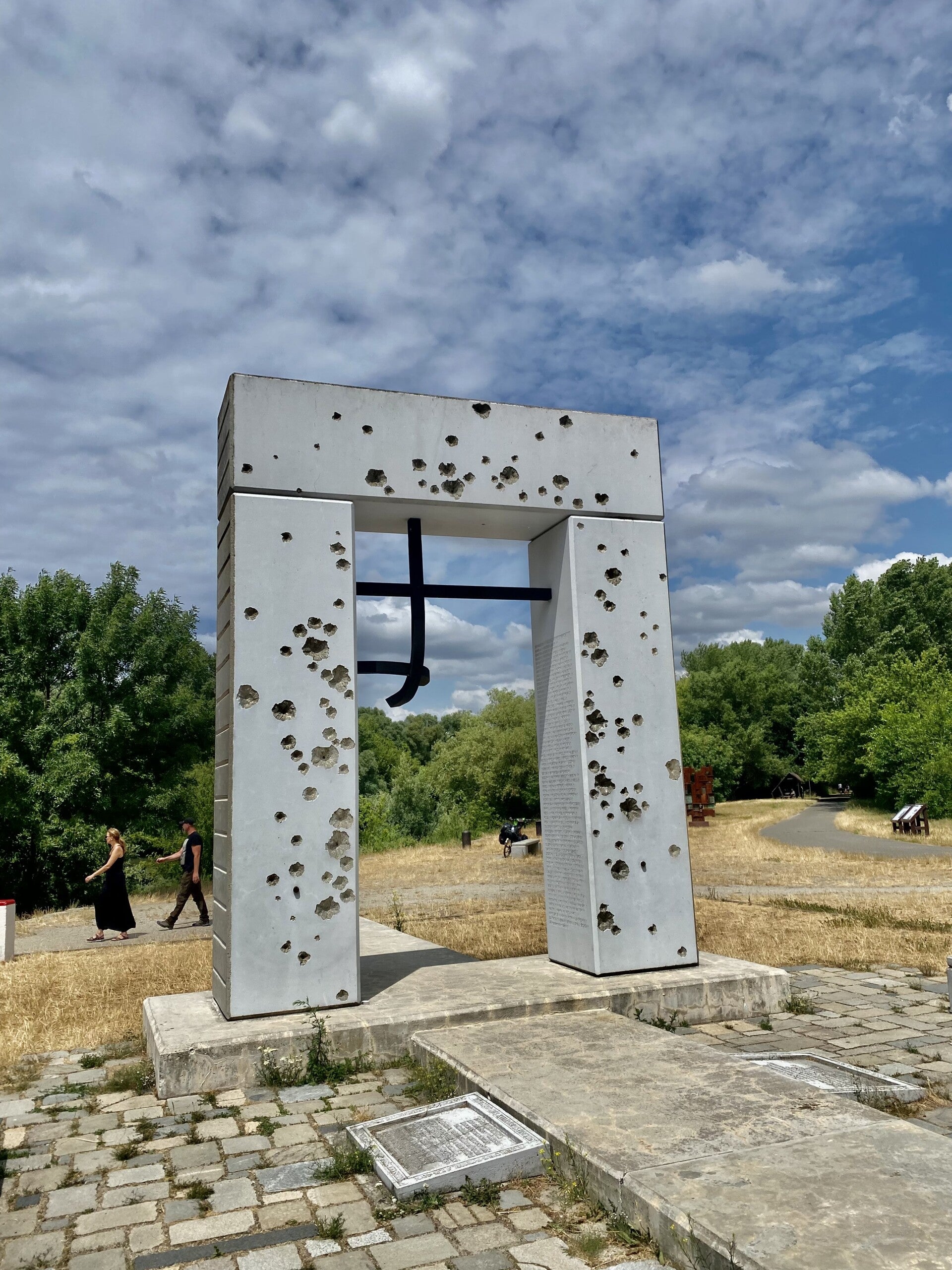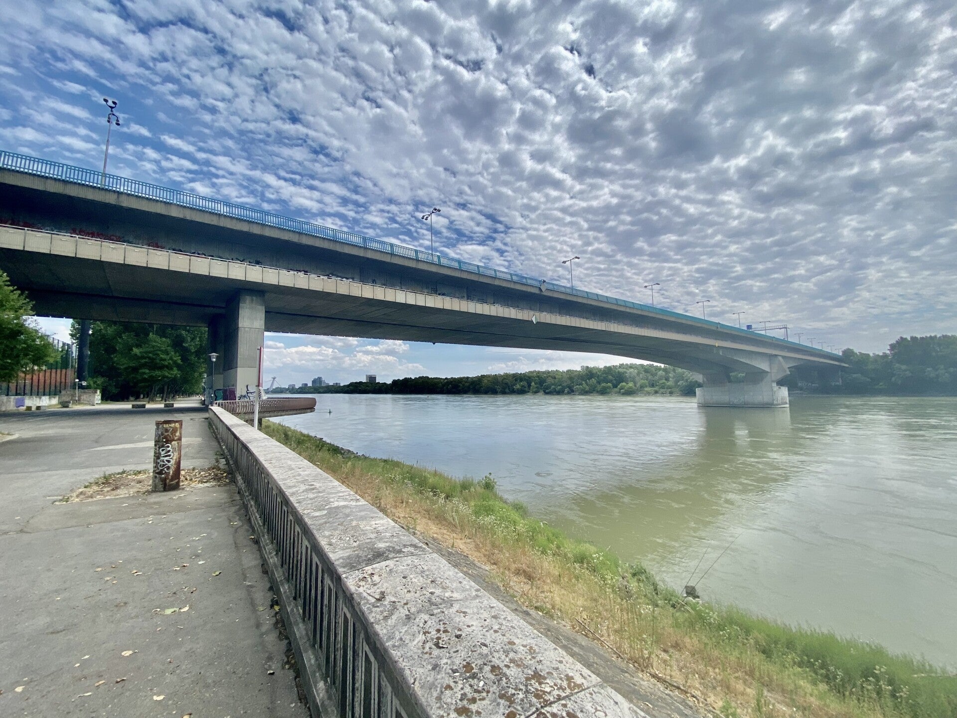Bratislava wird nur gestreift, da ich mich heute Abend mit eine lieben ehemaligen Arbeitskollegin verabredet habe, die hier mit Ihrer Familie Urlaub macht. Was liegt näher als dort eine Nacht wieder mal das Zelt aufzuschlagen. Ein einziger Halt ist in der slowakischen Hauptstadt drin. An der Brücke mit dem markanten Pfeiler und einer Aussichtsplattform in Form eines UFOs drauf. Das Geld für den Aufzug dort hoch spare ich mir. Ich bin ja nur einen Tag in der Slowakei und versuche ohne Bargeld durchzukommen. Ich habe mich extra in der letzten Stadt in Österreich mit Wasser und Brötchen eingedeckt.